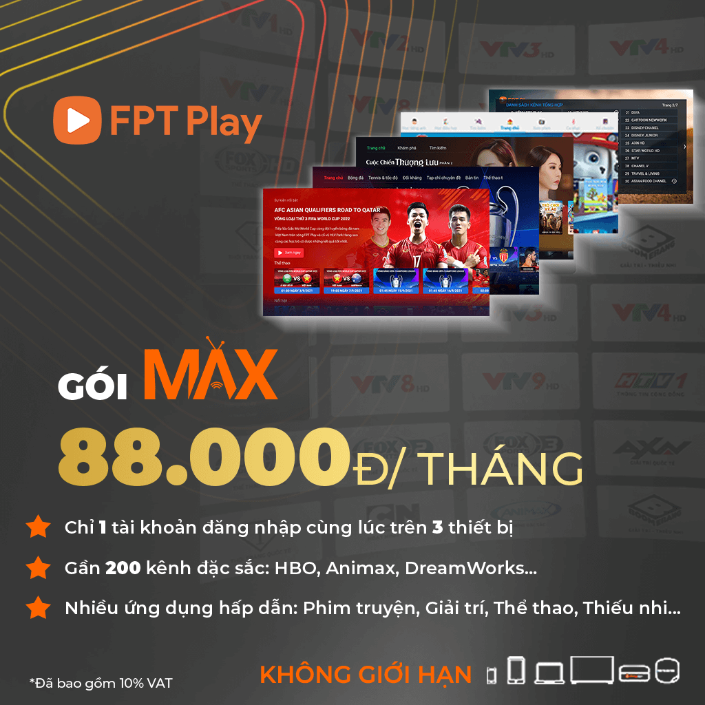 – Xem miễn phí tối đa 3 thiết bị (chỉ xem cùng lúc tối đa 1 thiết bị)