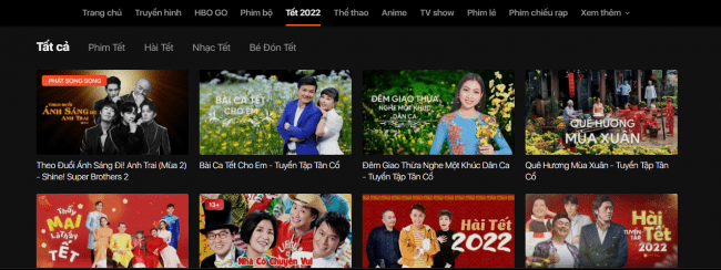 khổng lồ, được cập nhật liên tục. Với chuyên mục riêng dành cho Tết 2022, người dùng có thể thưởng thức những vở hài kịch, chương trình truyền hình dành riêng