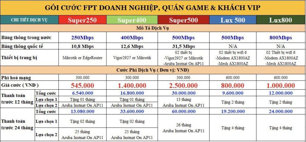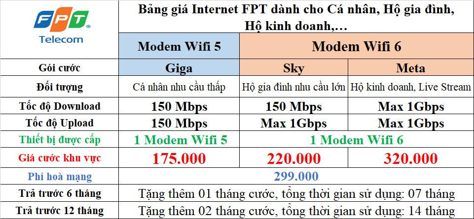 Lưu ý: Bảng giá gói cước đăng ký lắp mạng Internetđã bao gồm thuế VAT 10%.