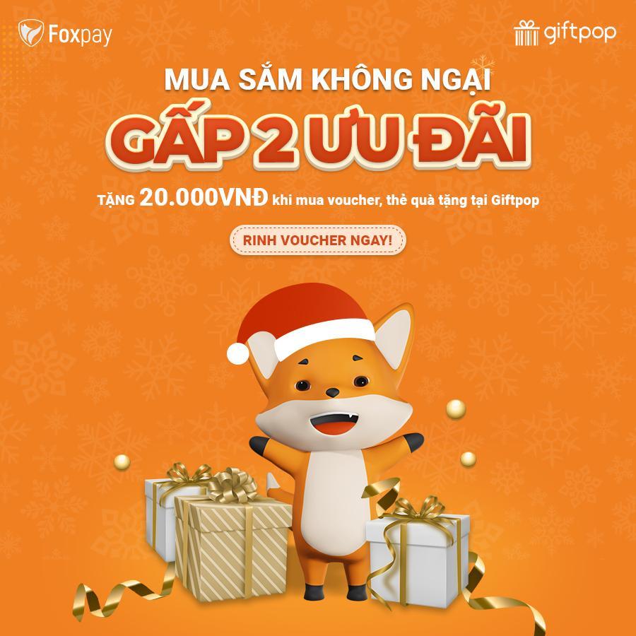 Từ ngày 21/12/2021, Ví điện tử Foxpay tặng 20,00OVNĐ khi mua voucher, thẻ quà tạng tại Giftpop.vn.