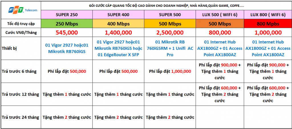 FPT HÀ NỘI XIN ĐƯỢC GỬI TỚI NHỮNG DOANH NGHIỆP – CÔNG TY NHỮNG GÓI CÁP QUANG HIỆN CÓ CỦA FPT DÀNH CHO QUÝ KHÁCH.